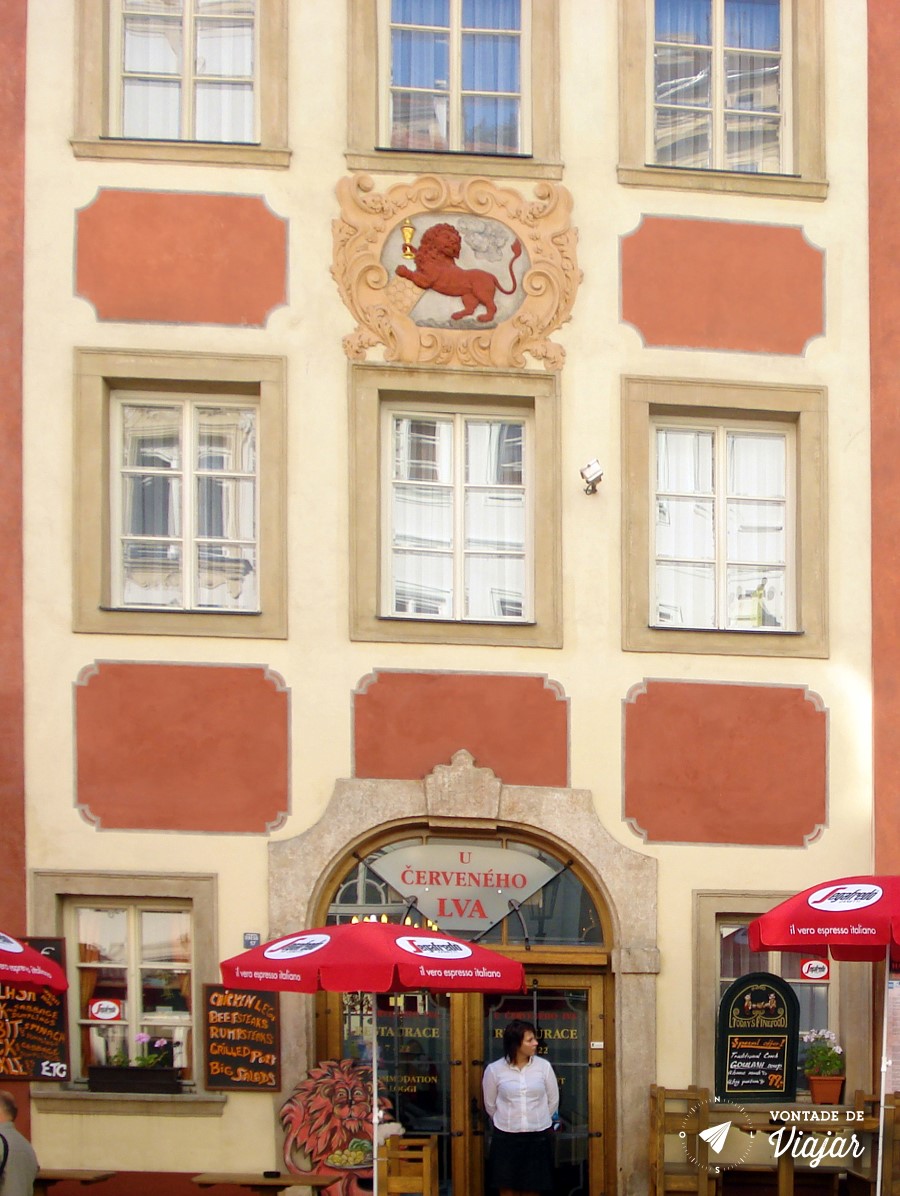 Hoje, boa parte dessas casas foi transformada em pequenas lojas, galerias e restaurantes. Vale a pena entrar nem que seja só para dar uma espiadinha nas casas por dentro. Nós tomamos um café no U Zeleného Čaje (nº 19), um bistrô super simpático, mas que não tinha nenhum símbolo alegórico na porta…