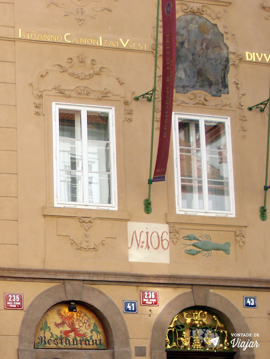 A brincadeira para quem passa pela rua Nerudova é reparar nos símbolos que ficam sobre as portas das casas. Eles são resquício do período medieval, quando os desenhos eram usados para identificar os endereços e facilitar a orientação. E foi assim por 400 anos até que, em 1770, o sistema de numeração dos endereços foi introduzido em Praga.