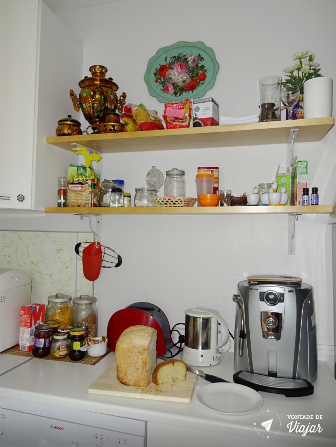 O Hostel DOM tem um café da manhã bem simples, mas que já faz uma diferença para começar o dia: café, leite, cereais, pão caseiro, manteiga e geléia. Aproveitamos o mercado que fica na esquina para comprar queijo e outras coisinhas para incrementar, mas não chegamos a cozinhar no hotel.