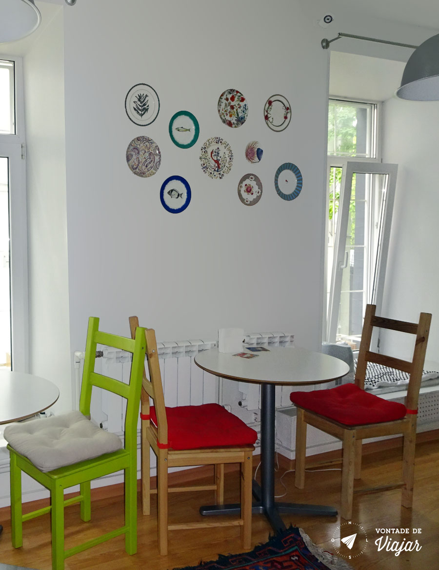 Mas depois a gente descobriu a entrada mais próxima do metrô, que passa por uma quadra de esportes e um estúdio de ballet, num clima simpático de bairro. A localização “escondida” dá até um charme pro hostel e faz o local se tornar um refúgio tranquilo bem no centro de Moscou :)