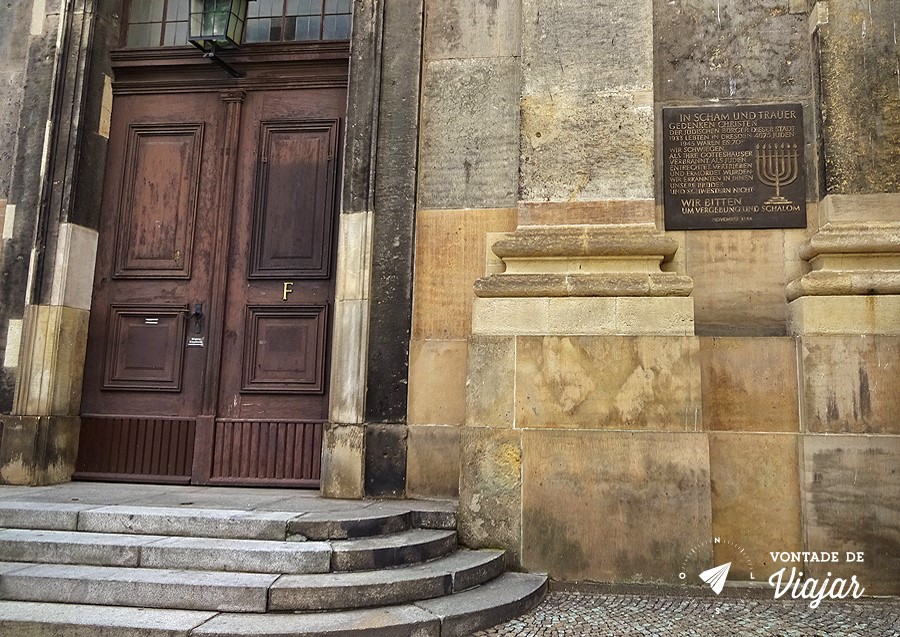 Na lateral, há uma placa em memória aos judeus da cidade que foram vítimas do holocausto, dizendo “Nós suplicamos por perdão e shalom” – e essa não foi a única vez que vimos símbolos judeus em igrejas cristãs na Alemanha.