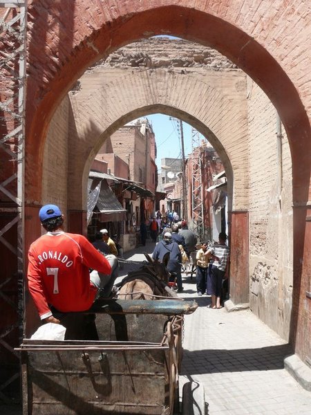 A Medina é um verdadeiro labirinto. Becos, arcos, casinhas, casarões, motos e lambretas dividindo espaço com caleches (carruagens) e muita gente por todo lado. Todos os tortuosos caminhos levam à Djemaa El Fna, uma grande praça principal com restaurantes e incontáveis lojinhas que formam o maior souk da cidade.