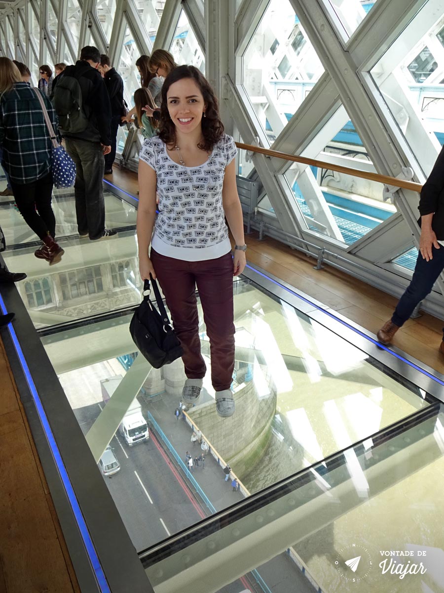 Na passarela superior, tem um chão de vidro pra ver os carros e navios passando lá embaixo! Dá o maior frio na barriga!